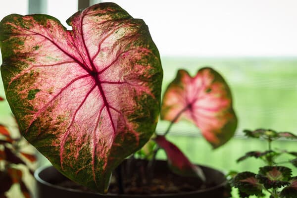 گل آپارتمانی با گلهای رنگی کالادیوم صورتی